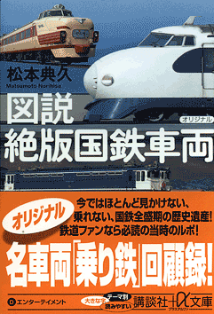 図説 絶版国鉄車両 今ではほとんど見かけない、乗れない、国鉄全盛期の歴史遺産! 鉄道ファンなら必読の当時のルポ! 名車両「乗り鉄」回顧録! 当時の列車の風景がよみがえる! 憧れだった新幹線やブルートレインから、いつもの街に溶け込んでいた近郊形電車まで、さまざまな車両を日本全国追い求めて、乗って書き下ろした旧型車評論。 国鉄時代の忘れえぬ列車の数々に、思わず自分の人生とリンクさせてしまうかも!?豊富な写真と解説で、現役を引退&引退寸前の古い車両を懐かしむ、ファン必携の回顧録! 書 名:講談社+α文庫 図説 絶版国鉄車両(ずせつぜっぱんこくてつしゃりょう) 著 者:松本典久(まつもとのりひさ) 発 行 日:2008年10月20日 第1刷発行 発 行 者:野間佐和子 発 行 所:株式会社講談社 図書符号:ISBN978-4-06-28 1232-0 本作品は書き下ろしのほか、月刊『旅』(JTBパブリッシング)、月刊『鉄道ジャーナル』(鉄道ジャーナル社)、月刊『鉄道ファン』(交友社)、『今しか乗れない国鉄型名車ガイド』(並木書房)、『JRの特急列車II』(保育社)に掲載されたルポを再編集し、大幅に加筆したオリジナル版です。 松本典久 1955年、東京都に生まれる。東海大学卒業。出版社勤務を経て、1982年からフリーランスの鉄道ジャーナリストに。主に鉄道や旅をテーマとして執筆活動をしており、『鉄道ファン』『鉄道ジャーナル』などにルポを発表する。また、ジャンルは日本の鉄道だけにとどまらず、世界中の鉄道や、鉄道模型に関する書籍の執筆・制作にも携わっている。 著書には『今しか乗れない国鉄型名車ガイド』(並木書房)、『カシミール3Dで見る・自分で描く空から眺める鉄道ルート』(実業之日本社)、『消えゆく「国鉄特急」図鑑』『昭和鉄道情景 路両電車篇』(以上、彩流社)、『京王電鉄ものがたり』(ネット武蔵野)、『寝台特急カシオペア』(小峰書店)、『時刻表を旅する本』(ベストセラーズ)などがある。また、編著には『はじめての鉄道模型』(成美堂出版)など多数。 図説 絶版国鉄車両 目次 はじめに 3 第1章 新幹線 0系新幹線 夢の超特急 16 名残を惜しむ最後の試乗 17 6両編成になった晩年の0系 20 山陽路を軽快に走る 21 大阪万博の“動くパビリオン” 24 食堂車がついに誕生 26 新型車両の登場と0系の斜陽 29 「最速」だけが新幹線の楽しみか 31 100系新幹線 100系、東海道を去る 32 新幹線としての素養 33 速く、安く、快適に 36 国鉄民営化さなかの車両開発 37 100系にも存在した「食堂車」 40 バブルに沸いた食堂車のメニュー 43 度重なるマイナーチェンジ 44 背の高さに目を見張る 47 国鉄民営化とともに 49 200系新幹線 北国を走るための厳しい条件 51 0系の兄弟車のような外観 52 営業列車では最高速度をマーク 56 2つの顔をもつ200系 57 東北新幹線の旅は仙台からがいい 62 現存する200系の延命対策 64 新幹線概要 66 第2章 特急形電車 485系特急形電車 交直流区間を縫う在来線特急網 72 日本最長の営業キロ 73 雪の青森駅を出発 76 大雪の中、停車、停電 77 新潟駅で乗客が入れ替わる 80 旧国鉄色を尊ぶ旅 82 東北から関西を飛ぶ鳥なし 84 381系特急形電車 日本の地形が生み出した電車 87 振り子式を味わうパノラマ列車 90 連続するカーブをすり抜ける 93 583系特急形電車 輸送力を補う国鉄の救世主 95 ブルートレインを踏襲した装備 97 3段ベッドの窮屈さ 98 トップクラスの平均速度を誇る 102 寝台顔で上京→特急顔で帰る 104 朝は通勤電車として 106 特急形電車概要109 第3章 特急形気動車 キハ80系特急形気動車 非電化地域の特急網整備 116 25年選手の美しさに目を見張る 117 各車両の壁色が異なるチグハグさ 120 近鉄特急に追い越される 122 ディーゼル特急にも食堂車が 124 熊野道を豪快に走る 128 入り組んだ海岸を車窓に終着駅へ 129 キハ181系特急形気動車 山岳線区に対応するために開発 132 非電化の山陰本線を結ぶ 133 国鉄時代の遺物を探す 136 関門海峡を越えて九州へ 139 キハ183系特急形気動車 北国ならではの技術を搭載 143 リゾート開発の波に乗った特急 144 国鉄色のイメージとは別物の外観 147 2階建て車両は静か 148 防風林とどこまでも続く大地 152 特急形気動車概要 156 第4章 急行形電車 165系急行形電車 今はなき「急行」専用車 162 普通列車のプチ夜行に乗る 164 ボックスシートならではの宴会 168 ちょっと寂しげな最終列車 170 急行形電車概要 173 第5章 急行形気動車 キハ58系急行形気動車 「急行」全盛時代の生き残り 180 由緒正しい山陰急行 182 マル・サンカク・シカクの謎 185 通過駅でタブレットを授受 188 特急の波に押される 190 急行形気動車概要 194 第6章 通勤・近郊形電車 101系・103系通勤形電車 50年前の「エコ」車両 200 まずは103系を求めて鶴見線 202 101系ならではの2両編成 207 113系ほか近郊形電車 すべての車種を求めた2日間 212 短編成の113系 216 211系は乗客に道徳を求める? 214 上等な普通列車の117系 220 7形式も乗れた鈍行の旅 222 通勤・近郊形電車概要 224 第7車 客車 24系25形・14系15形特急形客車 風前の灯の夜行列車 230 通勤形電車の合間を縫って