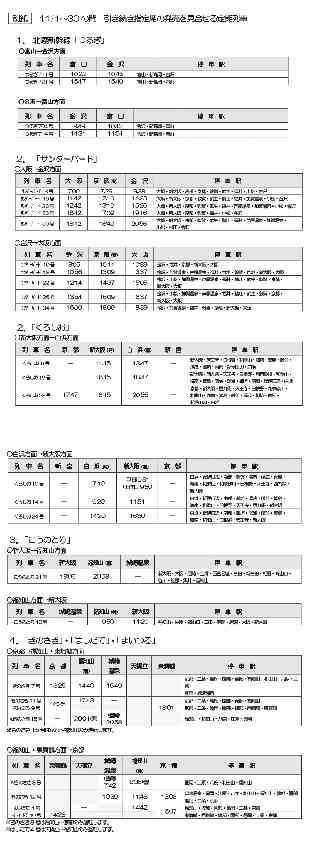 2022年 8月19日 西日本旅客鉄道株式会社 2022年秋の臨時列車計画のお知らせ 【2022年10月1日(土)〜2022年11月30日(水):61日間】 秋の臨時列車について、以下の通りお知らせいたします。 なお、今後のご利用状況等により現在の計画を変更する可能性がありますので、一部の列車の指定席の発売は当面の間見合わせます。 1.臨時列車の計画本数 山陽新幹線:660本(「のぞみ」172本「さくら」488本) 北陸新幹線:85本 在来線特急:1,782本 ※山陽新幹線の「さくら」488本は、ダイヤ改正以降に臨時列車化した列車です。 ※北陸新幹線の「かがやき」85本は、ダイヤ改正以降に臨時列車化した列車です。 ※在来線特急のうち924本は、「金曜・土曜・日曜・祝日」中心の運転とするなど臨時列車化した列車です。 なお、「スーパーはくと9号、6号」につきましては、10/1,2は運転いたしません。 2.指定席の発売について (1)発売を開始する臨時列車 以下の列車は、各列車運転日の1か月前の午前10時から発売します。 山陽新幹線:「のぞみ」172本・「さくら(10/1〜10/31運転分)」248本 北陸新幹線:「かがやき」85本(10/1〜10/31に運転) 在来線特急:914本(10/1〜10/31運転分) (2)発売を見合わせる臨時列車 以下の列車の指定席の発売は当面の間見合わせます。 発売の開始については、別途お知らせいたします。 山陽新幹線:「さくら(11/1〜11/30運転分)」240本 在来線特急:868本(11/1〜11/30運転分) 3.その他 ・定期列車の運転計画について 北陸新幹線「つるぎ」・在来線特急では、一部の定期列車について運休をお知らせしていましたが、10/1〜31の間は、すべての定期列車を通常通り運転します。 なお、今後計画を変更する可能性があるため、11/1〜30運転分については、指定席の発売を当面の間見合わせます。 ※詳細な列車は、別紙をご覧ください。 関係するお知らせ 北陸新幹線「つるぎ」、在来線特急今後の運転計画について 2022年2月10日 https://www.westjr.co.jp/press/article/2022/02/page_19424.html ・山陽新幹線「オフィスシート」の廃止について 山陽新幹線ひかりレールスターの「仕事がしやすい座席」(コンセント、広めのテーブル)として他の普通席と区分して発売していた「オフィスシート」の設定を廃止し、10月1日以降は他の普通席と同じ予約方法といたします。 ※座席の設備自体に変更はありません。 山陽新幹線をご利用の際は、「スマートEX」「EX予約」が便利でおトクです。 JR西日本のネット予約は、@いつでもどこでもカンタン予約Aシートマップで座席が選べるB予約の変更は何度でも無料 ※ご利用には会員登録(一部有料)などが必要です。※変更には制限があるほか、変更できないきっぷもあります。 北陸新幹線・在来線特急をご利用の際は、JR西日本ネット予約「e5489」が便利でおトクです。 JR西日本のネット予約は、@いつでもどこでもカンタン予約Aシートマップで座席が選べるB予約の変更は何度でも無料 ※ご利用には会員登録などが必要です。※変更には制限があるほか、変更できないきっぷもあります。 |