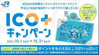 JR西日本グループ Release もっとつながる。未来が動き出す 2023年 9月21日 西日本旅客鉄道株式会社 株式会社ギ ッ ク ス 定期券を使いこなして毎日の暮らしをおトクに!ICOCA定期券は日々を頑張るあなたの味方です! ICOCA定期券に様々な特典をプラスしてご利用いただける『ICO+』(イコプラ)を実施します 2023年10月1日(日)〜12月31日(日)において、JR西日本を通勤・通学などで日々ご利用いただくお客様へ感謝の気持ちを込めて、ICOCA定期券をお持ちの方を対象に、JR西日本グループのサービスをおトクにご利用頂ける「ICO+(イコプラ)」を実施します。 本キャンペーンは、株式会社ギックスと協業し、同社が提供する商業施設・観光事業向けキャンペーンツール「マイグル」を活用した取組みです。 ICOCA定期券をお持ちのお客様はJR西日本グループ全体にとって大切なお客様であり、鉄道のご利用に留まらず、当社グループを広くご利用いただきたいとの思いから、ICOCA定期券を当社のファンクラブ会員証に見立て、様々なプラス特典をご用意しました。WESTERアプリ・WESPOアプリにICOCA定期券をご登録いただくことで、日々の列車のご利用だけでなく、お買物やお食事、そしてワークプレイスのご利用も、さらにおトクにJR西日本グループサービスをご利用いただけますので是非ご参加ください。 今回の取組で得た知見は今後の定期券、WESTERアプリ、WESTERポイントなどJR西日本グループサービスの魅力向上につなげてまいります。 |