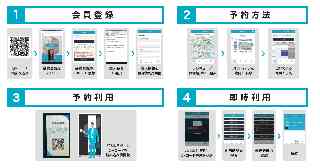 利用者は会員登録後、専用サイトで予約してご利用いただけます。利用者がいない場合は、即時利用もできます。