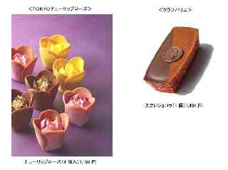 「東京ばな奈」で有名な「グレープストーン」の新ブランド。ラングドシャクッキー細工のチューリップの花びらの中からホイップ仕立てのショコラローズがとろけ、香り高いおいしさが広がります。