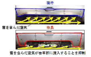 東海旅客鉄道株式会社 N700Sで採用予定の着雪防止対策の試行について 東海道新幹線では、冬季期間、車体に付着した雪が塊となって線路に落下し、バラスト等を跳ね上げて車両等を破損させないよう、速度を落として運転する場合があります。 このため、お客様に安全かつ安定した輸送を提供できるよう、当社では雪に対する様々な対策を実施しています。今年度は従来の対策に加え、一部のN700系営業車を用いて着雪防止対策を試行し、その対策をN700Sに反映します。今回の試行では、その対策の最終仕様について検討を進めます。 1.N700Sで採用予定の着雪防止対策(※入力者注:添付画像1参照) (1)台車付近における風の流れのシミュレーション結果をもとに、台車下部の開口面積を最大限縮小するよう台車カバー形状を改良し、台車部へ流れ込む空気を抑えることで雪の舞い上がりによる着雪を低減(※入力者注:添付画像2・3参照) (2)最も着雪が多いフサギ板を当社独自で開発した高出力で着脱可能な融雪ヒーター付フサギ板とし、フサギ板表面温度を融雪に効果的な温度に保つことで着雪量を低減(※入力者注:添付画像4・5参照) ※台車カバー形状の改良、融雪ヒーター取付けともに特許出願中 ※N700S営業車は平成32年度に投入予定 2.対象編成:N700系 3編成 |
