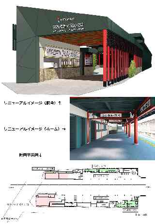 京阪電気鉄道株式会社 国際的な観光地「伏見稲荷大社」の玄関口 伏見稲荷駅をリニューアルします 〇駅舎やホームに千本鳥居のイメージを表現 〇トイレのバリアフリー化と美装化により快適性と利便性を向上 〇観光のお客さま向けのサービス施設を整備 京阪電気鉄道株式会社(本社:大阪市中央区、社長:中野道夫)では、伏見稲荷駅のリニューアルを実施します。 伏見稲荷駅は、国際的な観光地として注目される伏見稲荷大社の玄関口であり、近年、訪日外国人をはじめとする多くの観光のお客さまにご利用いただいています。今回のリニューアルでは、「伏見稲荷大社の千本鳥居をイメージできる駅」をコンセプトに、駅舎やホームを改良することで、有名観光地の最寄り駅にふさわしいイメージを表現します。また、トイレのバリアフリー化・美装化や観光のお客さま向けのサービス施設の整備により、お客さまの快適性・利便性の向上も図ります。 詳細は別紙のとおりです。 (別紙) 1.リニューアル概要について (1)デザイン ・駅舎 国内外から多くの観光客が訪れる伏見稲荷大社の千本鳥居をイメージした朱色の列柱を配置。外壁に落ち着いた黒系の仕上げ材を用いることによって「朱」を際立たせます。 ・ホーム 近年では記念撮影のスポットとしても親しまれている、ホーム上家の欄間とキツネの意匠を継承してリニューアル。訪日外国人をはじめとする観光のお客さまに、伏見稲荷大社参拝への期待感や参詣後の余韻を感じていただけるような意匠を施します。 (2)トイレのリニューアル 上下ホームのトイレを移設するとともに面積を拡大し、バリアフリー化を実施します。また、個室の全面洋式化や女性トイレへのパウダーコーナーの設置、音声案内の整備などにより、使いやすさを向上させるほか、温水洗浄便座や便所除菌クリーナー、ハンドドライヤーの設置により、清潔感の向上も図ります。 (3)サービス施設の整備 既に同駅構内で営業を開始しているいなり寿司専門店「伏見稲荷 千本いなり」のほか、改札外にコインロッカーや待ち合わせコーナーなどを設置し、利便性の向上を図ります。 2.計画平面図 添付画像参照 3.スケジュール(予定) 平成29年 7月上旬 工事着手 11月 竣工 以 上 |