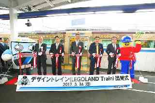 LEGOLAND Japan株式会社 〜LEGOLAND(R) JAPANの世界観を表現した あおなみ線『LEGOLAND(R) Train』の運行開始について〜 家族で一日楽しめる屋外型キッズテーマパーク『LEGOLAND(R) Japan』は、2017年4月1日(土)にグランドオープンを迎えます。オープンに合わせて、名古屋臨海高速鉄道株式会社のあおなみ線車両の外装及び内装にLEGOLAND(R) Japanの世界観を表現した「デザイントレイン」(愛称「LEGOLAND(R) Train」)が3月27日(月)から運行されます。運行開始を記念して、3月26日(日)に『デザイントレイン出発式』を実施しました。 出発式では、河村たかし氏(名古屋市長)、加藤一登氏(名古屋市会議長)、鈴木昭久氏(国土交通省 中部運輸局長)、近藤隆人氏(名古屋臨海高速鉄道株式会社 代表取締役社長)、トーベン・イェンセン(LEGOLAND Japan株式会社 代表取締役)が登場し、テープカットを実施。テープカット後、LEGOLAND(R) Japanのキャラクター「バディ」とあおなみ線のキャラクター「あお鉄くん」がデザイントレインをお見送りしました。 トーベン・イェンセンは、「約3年前からLEGOLAND(R) Trainの計画を進めており、本日、世界で名古屋にしかないLEGOLAND(R) Trainをご紹介でき、大変光栄です。この日を迎えることができたのは、あおなみ線の近藤社長や名古屋市のご協力があったからです。LEGOLAND(R) Trainが、たくさんの子どもたちの笑顔をLEGOLAND(R) Japanに運んでくれると思うとワクワクします。4月1日(土)を楽しみにしていてください。」と述べました。 デザイントレインは4両編成で、ロスト・キングダム・アドベンチャー、ザ・ドラゴン、レスキュー・アカデミー、サブマリン・アドベンチャーの各アトラクションの世界観を表現しております。 ※デザインは名古屋駅から金城ふ頭駅へ出発する際の進行方向先頭からの順番です。 |