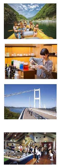 (有料や要予約の施設・体験等がございます。詳しくは、四国DCガイドブックをご覧下さい。) (1)学くるり @ 持ち込みもできる!藍染め体験(徳島県) 藍染めの原料となる藍染料「阿波藍」づくりの本場として、その伝統が引き継がれています。ハンカチなどをお気軽に染めていただくことはもちろん、お気に入りの布や服を持ち込んでの藍染め体験もできます。 A 高松城・屋嶋城AR・VR(香川県) アプリ「VR高松城」「甦る屋嶋城(やしまのき)」を使い、史跡高松城跡玉藻公園で、在りし日の高松城をスマートフォンや、貸し出し用タブレットで見ることができます。屋島山上では、日本書紀にも登場する古代山城の屋嶋城も楽しめます。 B 伊達家ゆかりの宇和島(宇和島城・伊達博物館・天赦園)(愛媛県) 伊達政宗の子 秀宗が入部したことから、伊達家にゆかりのある宇和島。 現存する12天守の一つ、優美な宇和島城で、5月4日(木)〜5日(金)に「伊達なうわじまお城祭り」、伊達博物館で、4月29日(土)〜5月7日(日)に「伊達政宗、秀宗の甲冑特別展示」、4月21日(金)〜6月4日(日)に「豊臣秀吉画像(レプリカ)」展示を行います。 C 高知城歴史博物館(高知県) 3月4日(土)から一般公開される新博物館。土佐藩主山内家伝来の貴重な資料を中心に、約67,000点を所蔵します。 高知の歴史や文化への理解が深まる展示は一見の価値ありです。 (2)観くるり @ 大歩危峡ミニランチクルージング(徳島県) 国の名勝天然記念物に指定された大歩危峡のV字谷に広がる壮大な渓谷美の中を、ミニランチ「妖怪村おおぼけ弁当」を楽しみながらクルーズできる四国DC期間限定特別企画です。 A ART SETOUCHI(香川県) 「瀬戸内国際芸術祭」の開催年以外の年も、会場となった島では、これまでの芸術祭作品の公開やイベント等を実施する、「ART SETOUCHI」の活動を行っています。 B 天空の産業遺産 マイントピア別子(愛媛県) 新居浜市にある標高750m付近のエリアは「東平(とうなる)」と呼ばれ、山の町として賑わっていました。銅山関連施設や社宅など多くは自然に還っていますが、一部は風化しつつも現存し往時の繁栄を今に伝えています。 東平へは天空の語り部(ガイド)が案内するバスツアーがオススメ。5月には端出場(はでば)ゾーンで約24,000本が咲誇る「しゃく薬まつり」を開催。 C 足摺岬クルーズ(高知県)四国最南端足摺岬を海から見る新しい絶景。地元の漁師と釣り人しか知らなかった灯台直下の巨大な洞窟に大接近。オープンエアーの渡船に乗って体験する気軽なアドベンチャー体験です。 (3)遊くるり @ 吉野川お手軽体験ラフティングプラン(徳島県) 「2017ラフティング世界選手権」の会場となる吉野川・大歩危で、気軽にラフティングが30分間体験できるプランです。小さなお子様やワンちゃんも参加可能。基本的に準備物無しで参加可能です。 A オリーブオイルブレンド体験(香川県) 気候や生産地、品種により、色、味、香りなどに特徴がでるオリーブオイル。日本一のオリーブの生産地、小豆島で世界各国のエキストラバージンオイルを味わい、自分だけのオリジナルオリーブオイルをつくるブレンド体験ができます(場所:小豆島オリーブ園)。 B 瀬戸内しまなみ海道サイクリング(愛媛県) 今治市と尾道市の間にある島々を結ぶ全長約70km を、瀬戸内の自然や海峡に架かる橋の迫力を体感しながらサイクリングできます。レンタサイクルターミナルは13か所あり、乗捨ても可能。電動アシスト自転車もあります。 C さかわ・酒ぶら上町歩き(高知県) 「歴史と文教のまち佐川町」を象徴する上町(うえまち)地区。江戸時代以来、400年の伝統を受け継ぐ司牡丹酒造の白壁の酒蔵群や、国指定重要文化財「武村家住宅」が建ち並ぶ街並みを楽しめます。 (4)心くるり 四国八十八ヶ所霊場における特別企画 四国DCに向け、四国内の霊場にて特別企画が行われます。詳しくは、四国DCガイドブックをご覧下さい。 (5)食くるり @ 徳島の活鱧料理 味わいキャンペーン2017(徳島県) 大河「四国三郎・吉野川」の栄養が流れ込む豊かな海で育まれた鱧は、皮に濃い旨みがあり、身は上品で程よく脂がのっています。徳島県内外の対象料理店で鱧料理をご注文いただいた方、徳島県内の加工業者で鱧商品をご購入された方の中から抽選で、徳島県産農林水産物などが当たるキャンペーンを実施します。 A 観音寺路地裏味めぐり(香川県) 銭形砂絵で有名な観音寺市。観音寺の路地裏を巡り、ここでしか食べられない美味しいもの(出来たて天ぷら・あいむす焼き・お饅頭・おいり・ソフトクリームなど)を食べて巡りませんか? B 鯛めし(愛媛県) 鯛の生産量日本一(*)の愛媛県では、2種類の「鯛めし」が味わえます。鯛の刺身を特製のタレとともにアツアツのごはんにかけて食べる「宇和島鯛めし」と生の鯛を丸ごと1匹のせて炊き上げる「鯛めし」。二つのスタイルで食べ比べてみて! ※平成27年度真鯛養殖量(農林水産省「漁業・養殖業生産統計による) C 漁師町のまち歩き&オリジナル丼ぶり「久礼丼」(高知県) 国