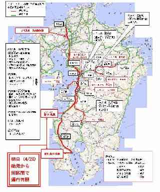 国土交通省 PressRelease MinistryofLand,Infrastructure,TransportandTourism 平成28年4月20日 鉄道局安全監理官室 JR九州 九州新幹線 新水俣駅〜鹿児島中央駅間の運転再開について 九州新幹線については、4月14日(木)地震発生後、全線で運転を休止しているところですが、別添のとおり、明日(20日)の始発から新水俣駅〜鹿児島中央駅間で運転を再開することとなりましたので、お知らせいたします。 ※博多駅〜新水俣駅間については、引き続き運転を見合わせ |