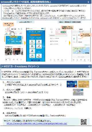 2021年8月19日 西日本旅客鉄道株式会社 JR西日本では、せとうち旅行に欠かせない観光ナビ『setowa』について、現在の岡山県・広島県・山口県を中心とするせとうちエリアに加え、10月から開催される四国デスティネーションキャンペーンに合わせて四国全域にサービスエリアを拡大します。またエリア拡大に合わせて、四国をおトクに周遊できる「setowa周遊パス」や観光・体験・グルメが楽しめる「setowaチケット」の新規発売、およびsetowaの機能改修も実施します。 『setowa』は、旅の予約やチケットの利用をスマートフォンによりキャッシュレス、チケットレスで行うことができ、駅や旅行代理店、現地のスタッフとの接触も少なく、安心してご旅行いただけます。せとうちや四国へのご旅行の際には、是非ご利用下さい! 1.サービスエリア拡大日 2021年9月22日(水)(予定) ※アプリの審査状況等により、リリース日が遅れることがあります。 2.サービスエリア 【現在】 岡山県、広島県、山口県、愛媛県(松山市・今治市) 【エリア拡大後】 岡山県、広島県、山口県、徳島県、香川県、愛媛県、高知県 3.主な特徴 (1)setowa周遊パス、setowaチケットの新規発売 JR四国様や両備グループ様をはじめとした地域の事業者の皆様と連携し、四国エリアを安心、おトクに周遊できる「setowa周遊パス」を3商品、四国エリアの観光・体験・グルメが楽しめる「setowaチケット」を約20商品新たに発売します。 ※商品内容は別紙、またはsetowa内でご確認下さい。 (2)setowa使い方ガイド、および「車のみ」「自転車のみ」経路検索機能等の追加 四国エリア拡大に合わせて、setowaのTOP画面にsetowaの使い方がよくわかる「使い方ガイド」を追加します。また経路検索機能に、レンタカーでの移動やサイクリングでより便利にご利用いただけるよう「車のみ」や「自転車のみ」の経路を検索できる機能等を追加します。 4.J-WESTポイントが当たる!setowaでせとうちを旅しようキャンペーン J-WESTカードでsetowa周遊パス、setowaチケットを購入されたお客様の中から、抽選で計100名様に、J-WESTポイント1,000〜5,000ポイントをプレゼントするキャンペーンを、9月30日まで実施しています。この機会に是非J-WESTカードでsetowa周遊パス等をご購入下さい。 5.setowaご利用方法 「setowa」は、スマートフォン用アプリに加え、スマートフォン用WEBサイトでも利用可能です。 (1)アプリ 「GooglePlay」または「AppStore」で「setowa」を検索し、ダウンロードして下さい。 ※動作推奨環境:Android6.0以上、iOS11.0以上 (2)WEBサイトURL https://app.jwfm.setowa.jp/ ※以下QRコードからアプリのダウンロードストア、WEBサイトへアクセスいただけます。 ※Android、GooglePlayおよびGooglePlayロゴはGoogleLLCの商標です。※Apple、Appleのロゴは、米国及びその他の国々で登録されたAppleInc.の商標です。AppStoreは米国及びその他の国々で登録されたAppleInc.のサービスマークです。iPhone商標は、アイホン株式会社のライセンスに基づき使用されています。iOS商標は、米国Ciscoのライセンスに基づき使用されています。※QRコードは(株)デンソーウェーブの登録商標です。 「setowa周遊パス」新商品 ・setowa四国エリア拡大に合わせて、自由周遊区間内のJRや指定の鉄道・路線バス・船舶が乗り放題のsetowa限定おトクな周遊パスを新たに3商品発売します。 @setowa四国DC満喫きっぷ Asetowa香川愛媛ワイドパス Bsetowa岡山香川ワイドパス ・「@setowa四国DC満喫きっぷ」、「Asetowa香川愛媛ワイドパス」は2021年10月から開催される四国デスティネーションキャンペーン期間限定の商品になりますので、この機会に是非ご利用下さい。 setowa周遊パス @setowa四国DC満喫きっぷ2 発売額:おとな9,000円、こども3,000円(税込み) ※こどもは大人と同一行程の場合に限りご利用いただけます。 ※こども用は、大人用と同時購入に限ります。 有効期間:3日間 発売期間:2021年9月22日〜2021年12月26日 ※利用日1か月前10時から有効開始日当日まで発売 ご利用期間:2021年10月1日〜2021年12月28日までの土曜・日曜・祝日を1日以上含む連続する3日間 ※2021年12月26日利用開始分まで発売 変更・払いもどし:未使用で、かつ有効期間内に限り可能(払いもどしは1人あたり660円の手数料が必要) 効力 鉄道:JR(特急列車・普通列車の普通車自由席)/四国旅客鉄道会社線全線(宇多津〜児島間を含む) 土佐くろしお鉄道(特急列車・普通列車の普通車自由席)/中村・宿毛線 窪川〜宿毛 ごめん・なはり線後免〜奈半利 バス:ジェイアール四国バス(路線バス)2/久万高原線松山〜久万高原 大栃線土佐山田〜美良布 ※JR線、および土佐くろしお鉄道線の特急列車の普通車指定席またはグリーン車をご利用の場合は、乗車券部分のみ有効です。料金券を別途お買い求め下さい。 ※サンライズ瀬戸号にはご乗車いただけません。 ※JR四国バスは、路線バスのみ有効です。高速バスにはご乗車いただけません。 setowa周遊パスAsetowa香川愛媛ワイドパス3 発売額:おとな6,000円、こども3,000円(税込み) 有効期間:3日間 発売期間:2021年9月22日〜