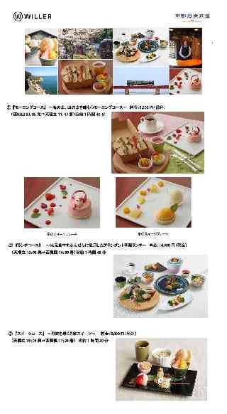 2023年 1月27日 WILLER TRAINS株式会社 http://trains.willer.co.jp/ レストラン列車「丹後くろまつ号」2023年春夏コース販売開始 丹鉄アテンダント考案の「海の京都」をたっぷり味わえるランチコースなど 心弾む春・夏にぴったりの全3コースが登場 京都丹後鉄道(以下「丹鉄」)を運行するWILLER TRAINS株式会社(本社:京都府宮津市、代表取締役:飯島徹)は、2023年4月〜9月に「丹後くろまつ号」2023年春夏コースを運行します。運行開始に先駆け、本日1月27日(金)10時より、丹後くろまつ号予約ページ(https://travel.willer.co.jp/train/tantetsu/)にて予約受付を開始します。 絶景・食・文化・歴史など、様々な側面から丹鉄沿線の魅力を堪能できるレストラン列車「丹後くろまつ号」ならではの感動体験を提供します。 2023年春夏コースは、丹鉄沿線の「海」と「山」をテーマにした2種類のベーグルサンドと目で季節を感じられるスイーツプレートをお楽しみいただける『モーニングコース』、丹後くろまつ号に乗務するアテンダントと地元ホテル「KISSUIEN Stay & Food」がコラボレーションし考案した、アテンダントのお客様への思いがたっぷり詰まった懐石料理を召し上がりながらゆっくりと海の京都を満喫いただける『ランチコース』、丹波黒豆や丹波栗など丹波を感じる和スイーツを堪能いただける『スイーツコース』の全3コースとなっています。なお、『スイーツコース』が天橋立駅発となるのは史上初となります。 福知山から天橋立間を走行する『モーニングコース』では、緑豊かな美しい山々と田園風景を車窓からご覧いただけます。天橋立から西舞鶴間を走行する『ランチコース』と『スイーツコース』では、丹鉄沿線の絶景ポイント「奈具海岸」や「由良川橋梁」など“海の京都“を感じることができる日本海の絶景を車窓からゆっくりとご覧いただけます。どのコースも、車窓からの自然豊かな絶景とともに、丹後の土地でしか味わえない絶品のお食事をご堪能いただきながら非日常的な時間をお過ごしいただけます。 今後も、京都丹後鉄道は、地域の皆様に愛される鉄道を目指してまいります。 ■コース内容 @『モーニングコース』〜海の幸、山の幸を味わうモーニングコース〜料金:6,300円(税込) (福知山10:08発⇒天橋立11:47着)※約1時間40分 「海」と「山」をテーマにした2種類のベーグルサンドと、目で見て季節を感じられるスイーツプレートをご用意しました。本コースは福知山出発し、緑豊かな山間部の景色を走行しながら、日本海の宮津湾を望む天橋立に到着します。そんな丹鉄沿線の特色を食からも感じていただけるよう2種類のベーグルサンドは、スモークしたサバ(海)や丹波鶏(山)をメインにサンドした朝食にもぴったりな一品で、スイーツプレートは春にはベリーや苺を、夏には丹波レモンをメインとした季節に合わせて変わる可愛らしいプレートをご用意しています。途中下車する「大江駅」では、駅の売店で地元の特産品の購入ができるほか、「大江山の鬼伝説」にちなんで全国の鬼を愛する人たちの手によって作られた鬼瓦公園を自由に散策し、旅の思い出として全国の鬼士の作品と記念撮影などをしていただけます。 ≪メニュー≫ 【1皿目】 ・海のベーグルサンド ・山のベーグルサンド ・ビーツとジャガイモのスープ ・ピクルスピック/フルーツピック ・丹鉄珈琲 【2皿目】 ・春)4月〜6月 タイベリーとライチのムース、苺とマカロンのアンサンブル ・夏)7月〜9月 丹波レモンとヘーゼルナッツ〜フリュイジョンヌとハーブジュレを添えて〜 A『ランチコース』 〜地元食材をふんだんに使用したアテンダント考案ランチ〜料金:14,000円(税込) (天橋立13:05発⇒西舞鶴14:50着)※約1時間45分 日ごろ丹後くろまつ号に乗務しお客様の声を一番近くで聞くアテンダントが、地元食材を活かして「KISSUIEN Stay & Food」と共にメニューを考案し、アテンダントの思いがたっぷりと詰まった懐石料理をご用意しました。お客様からも人気の高い京都肉のサーロインステーキをメインに、旬のお魚や金目鯛西京焼きの魚料理、熱々をお楽しみいただける海鮮茶碗蒸し、水物には健康に良いとされる甘酒の入ったチーズテリーヌをご提供します。天橋立駅を出発して西舞鶴駅まで海沿いのルートで、海が目の前に広がる「奈具海岸」では約15分停車し、水面からわずか6mの由良川橋梁の上を列車が徐行しながら走行するため、レストラン列車ならではの絶景をゆっくりと眺めながら過ごす特別なひと時をお楽しみいただけます。 ≪メニュー≫ ・前菜:生ハムの生春巻き/すだちたべそそば 炙り貝柱おろしポン酢 ・お造り:旬の地魚三種 ・焼物:金目鯛西京焼き ・温物:海鮮茶碗蒸し海苔あんかけ ・強肴:京都肉のサーロインステーキ焼き野菜添え ・御飯/留椀/香物:貝御飯/お吸い物 ・水物:甘酒とチーズのテリーヌ ・丹鉄珈琲 ≪お土産≫ ・桑の葉とジンジャーの金平糖 B『スイーツコース』〜丹波を感じる和スイーツ〜 料金:5,000円(税込) (天橋立16:05発⇒西舞鶴17:25着)