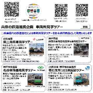 JR西日本グループ Release もっとつながる。未来が動き出す 2023年 6月29日 山陽電気鉄道株式会社 神戸電鉄株式会社 神戸市交通局 株式会社日本旅行 西日本旅客鉄道株式会社 兵庫デスティネーションキャンペーン特別企画! 兵庫県内の鉄道会社による車両所公開ツアーを開催します 2023年7月から9月に開催する「兵庫デスティネーションキャンペーン(以下、兵庫DC)」の特別企画として、兵庫県内の鉄道会社による車両所公開ツアーを開催いたします。社員による車庫内の紹介や、普段見ることのできない車両や引退間近の車両の撮影、運転士・車掌体験などができる企画となっています。ぜひご参加いただき、鉄道の魅力を感じてください。 1.実施概要 兵庫DC開催に合わせ、山陽電気鉄道株式会社(以下、山陽電車)・神戸電鉄株式会社(以下、神戸電鉄)・神戸市交通局・西日本旅客鉄道株式会社(以下、JR西日本)による特別企画「車両所公開ツアー」を開催いたします。 ※詳細は別紙をご覧ください。 2.ツアーの発売について (1)発売開始日時 山陽電車 東二見車庫見学ツアー:2023年7月3日(月)11時 神戸電鉄 鈴蘭台車両基地見学&車両撮影ツアー:2023年7月10日(月)11時 神戸市交通局 名谷車両基地見学ツアー:2023年7月18日(火)11時 JR西日本 網干総合車両所明石支所103系撮影ツアー:2023年7月24日(月)11時 (2)発売箇所 日本旅行「赤い風船 関西版」ホームページ https://www.nta.co.jp/akafu/west/ で発売します。 ※6月29日(木)16時頃情報公開します。 ※募集人数に達し次第発売終了となりますので、お早めにご予約ください。 3.兵庫DC限定ヘッドマークデザイン 車両所公開ツアーで見学できる各社の車両に、兵庫DC限定デザインのヘッドマークを装着し、皆さまをお出迎えいたします。 4.参加特典 各ツアーに参加されたお客様に、ヘッドマークと同デザインの缶バッジとシールをお渡しいたします。 5.その他 ・ツアー当日、各車両所でのご購入・ご参加はできませんのでご注意ください。 ・現地事情により、ツアー内容が変更になる場合があります。 【参考 「兵庫デスティネーションキャンペーン」】 兵庫デスティネーションキャンペーン推進協議会とJRグループでは、2023年7月から9月まで「兵庫デスティネーションキャンペーン『兵庫テロワール旅 ―私の感動、その先へ。―』」を開催します。「テロワール」とは「土地の個性」を意味する言葉です。 兵庫五国(摂津・播磨・但馬・丹波・淡路)の風土に育まれた「食」や、歴史・文化・産業に根差した本物の「体験」が味わえる、質を重視したコンテンツをご用意し、皆さまをお出迎えいたします。 ※詳細は、下記の兵庫 DC 各 WEB サイトでご確認いただけます。 |