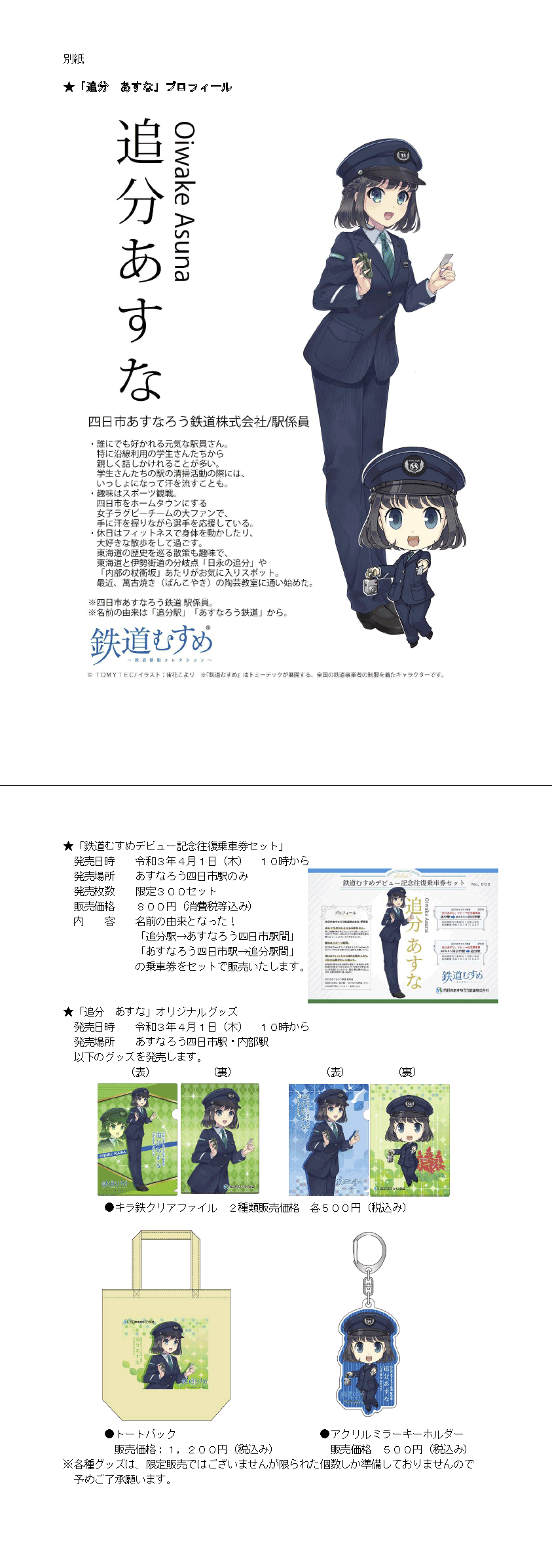 キャプション: 「鉄道むすめデビュー記念往復乗車券セット」および鉄道グッズについて