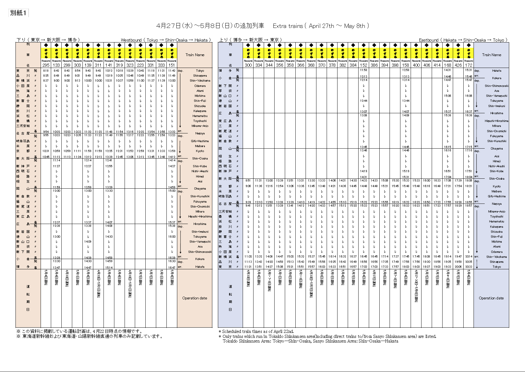 キャプション: 4月27日〜5月8日に追加運転する臨時列車