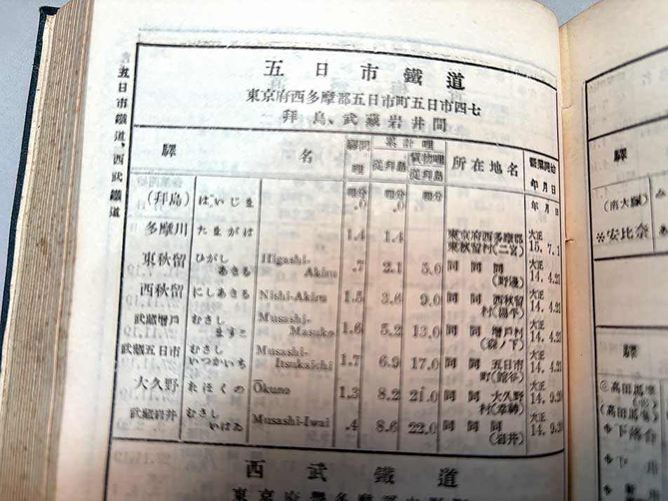 キャプション: 「鉄道停車場一覧」昭和2年