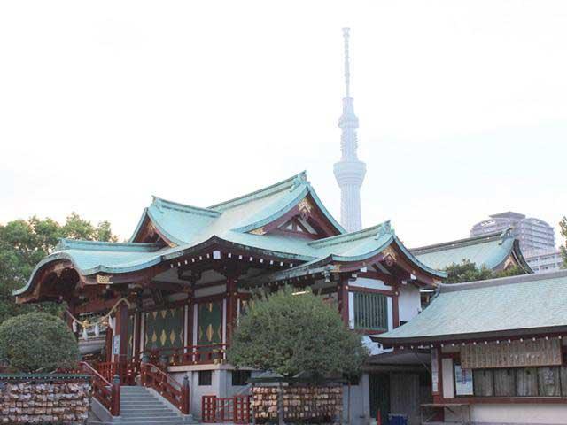キャプション: 亀戸天神と東京スカイツリー(イメージ)