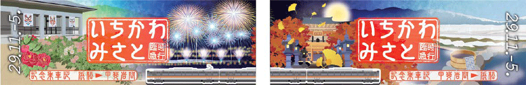 キャプション: 記念乗車証(左 下り:おもて) (右 上り:おもて)
