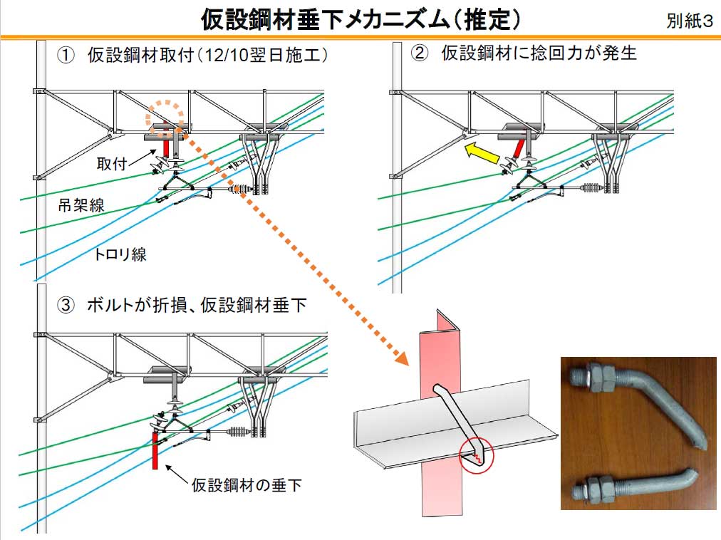 キャプション: 別紙3 仮設鋼材垂下メカニズム(推定)
