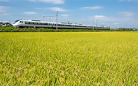 稲穂の実る頃 稲穂の実る頃になると空気が澄んでくる。 青空との境目を走る赤い電車は、 秋の景色に彩りを添えてくれた。 名鉄各務原線 新鵜沼〜鵜沼宿 2020年9月28日撮影 |