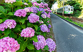 紫陽花の咲く道 紫陽花が咲く道を歩くと、 ガタゴトと電車の近付く音がした。 梅雨は本日なかやすみ。 豊橋鉄道渥美線 植田〜向ヶ丘 2021年6月10日撮影 |